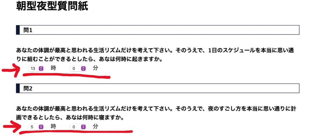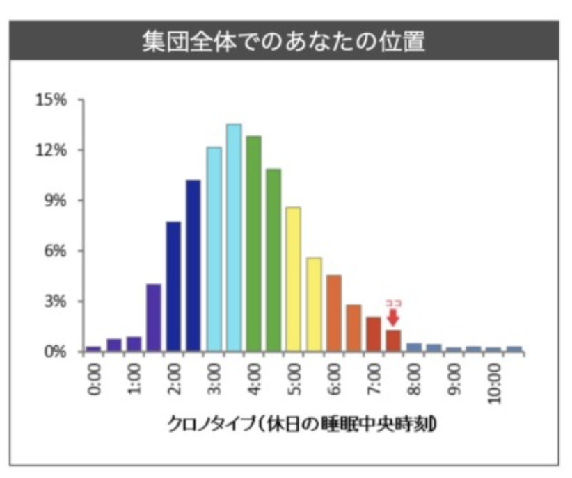 こちらも体内時計の特性を知るためのツールとのこと。結果がこちら。